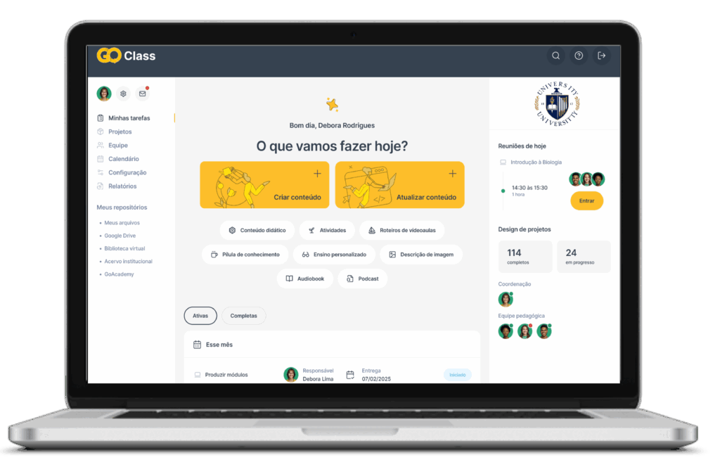 O GoClass une tecnologia de ponta à inteligência pedagógica para transformar a criação de conteúdo educacional.